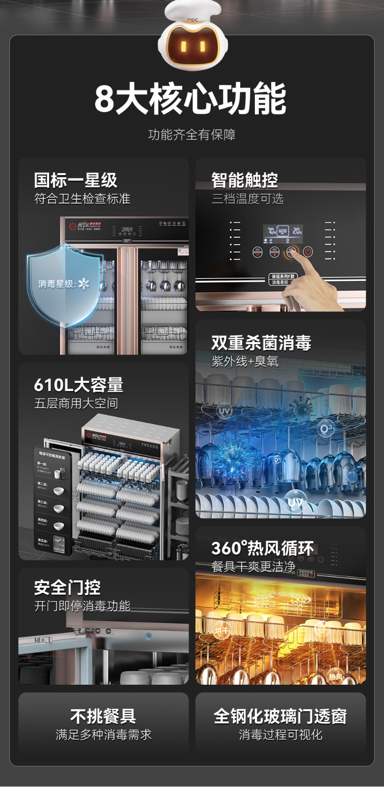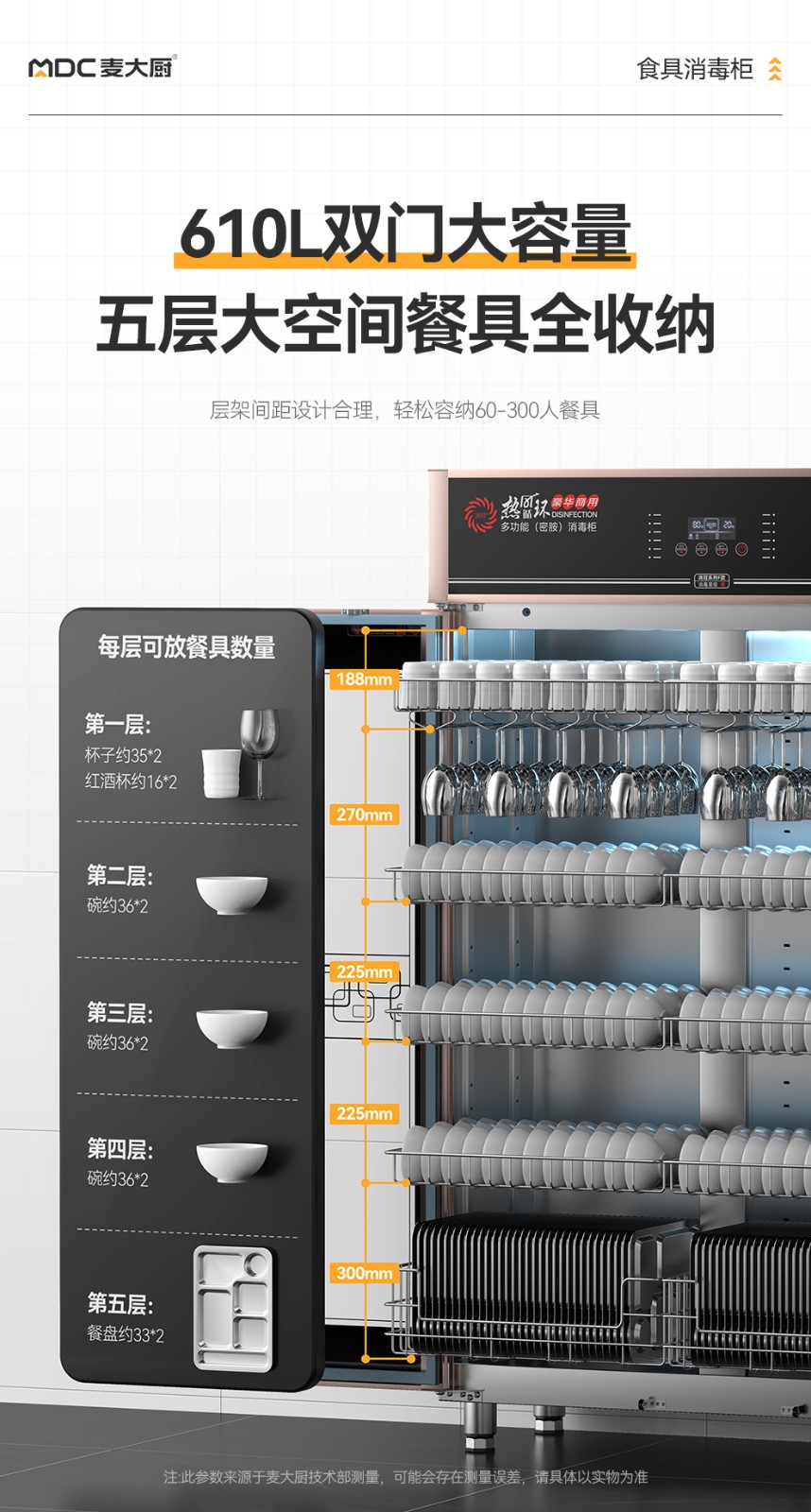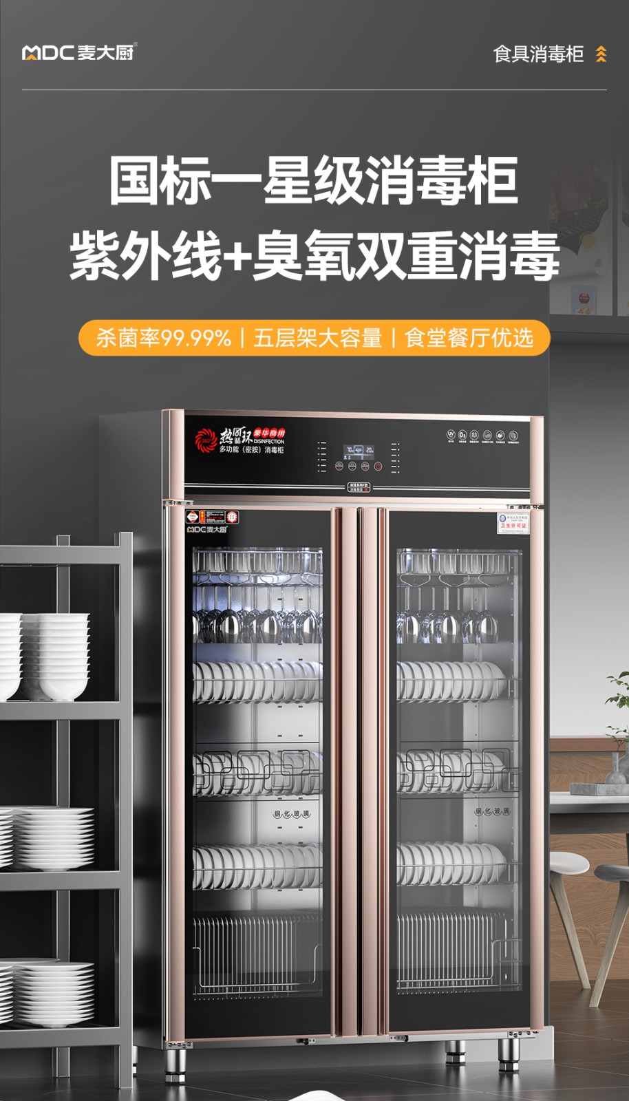 麥大廚豪華觸屏款5層雙門中溫食具消毒柜(臭氧+紫外線+熱風(fēng)循環(huán))1550W