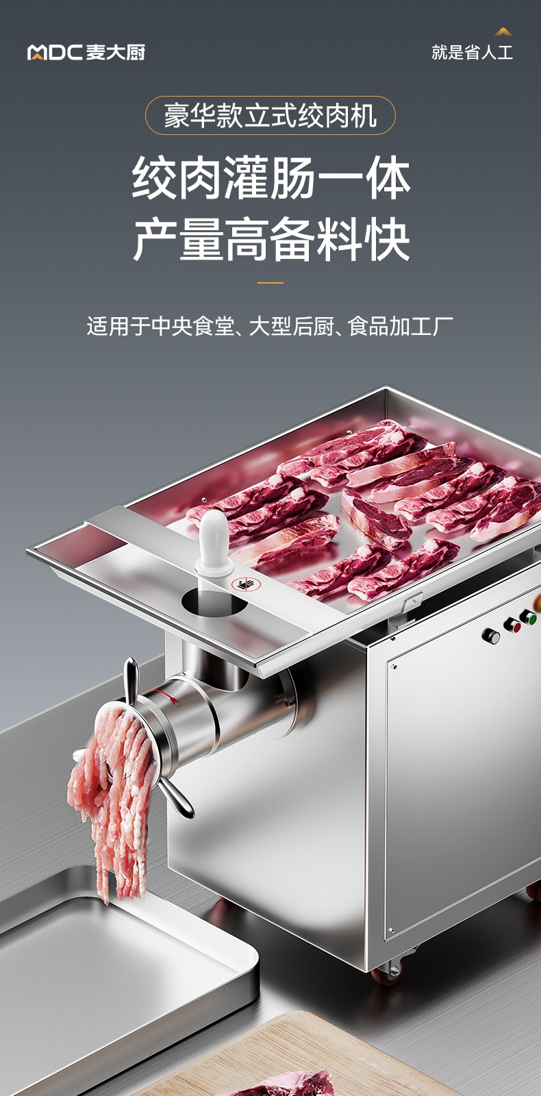首頁 > 商廚產(chǎn)品 > 食品機(jī) > 絞肉機(jī) >麥大廚豪華款3KW多功能可脫卸灌腸機(jī)碎肉機(jī)商用立式絞肉機(jī)