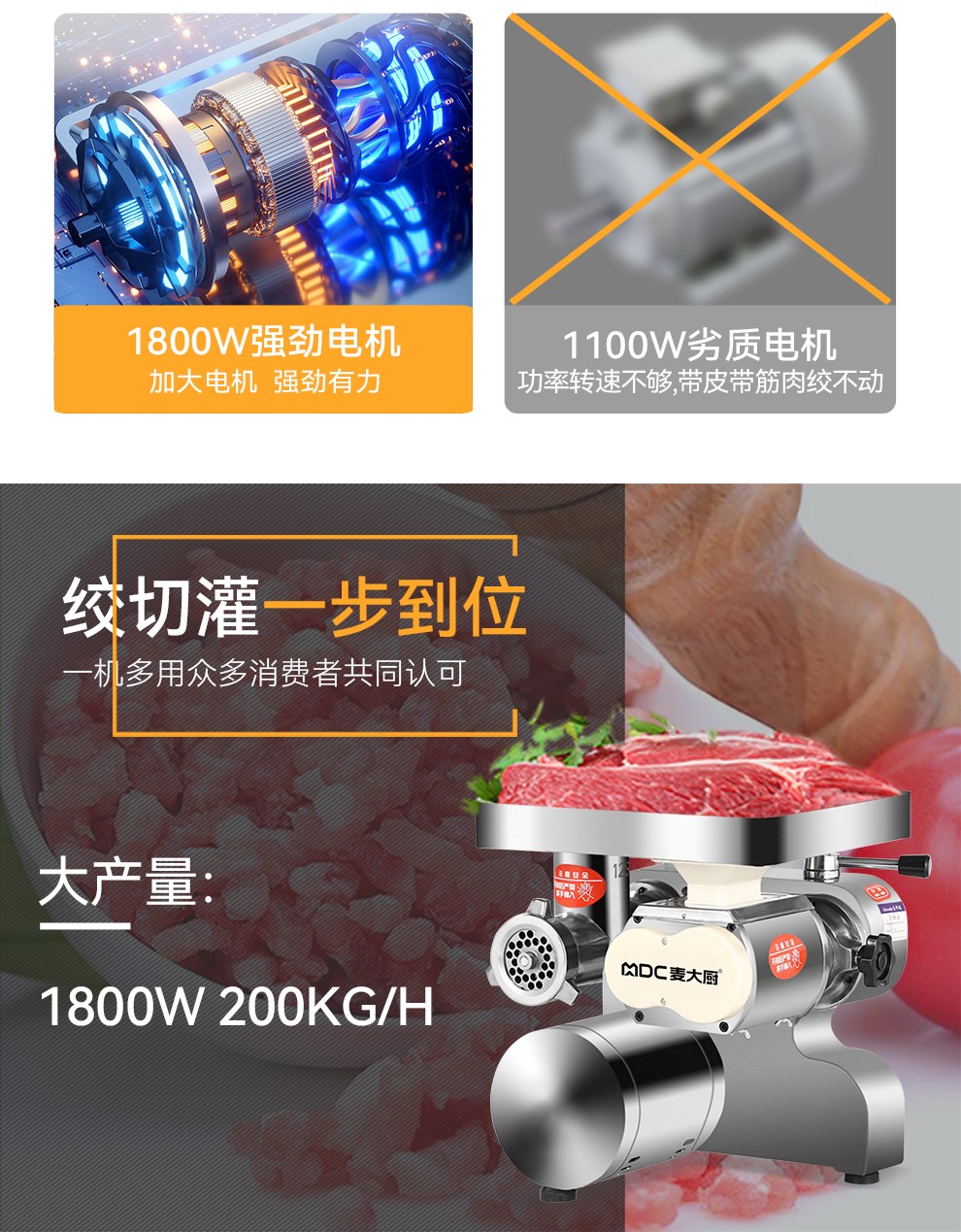麥大廚1.8KW商用多功能可脫卸臺(tái)式絞切肉機(jī)灌腸機(jī)碎肉機(jī)