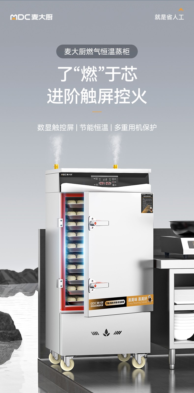 麥大廚商用單門10盤智能恒溫燃氣蒸飯柜大型食堂蒸飯箱