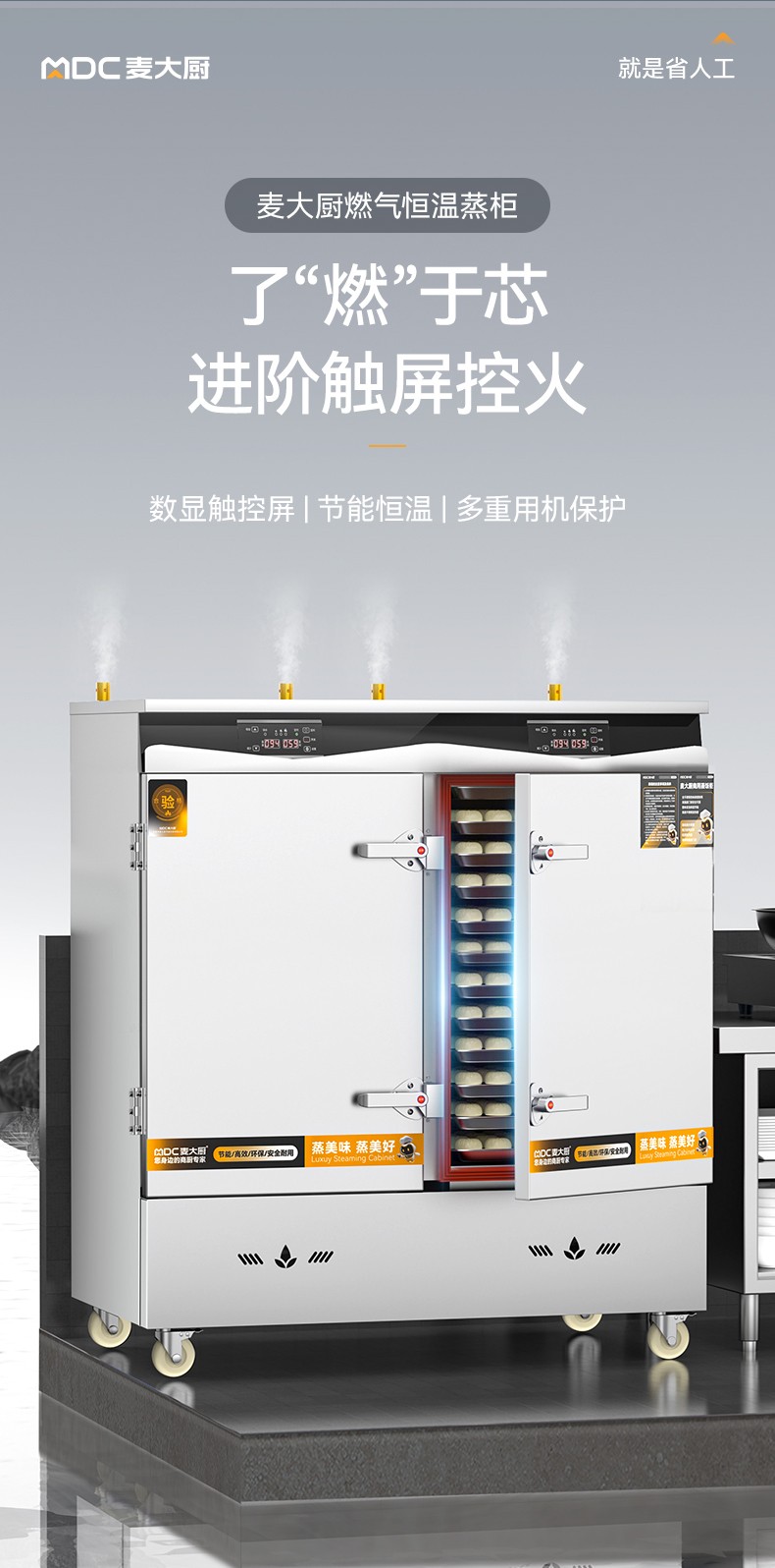 麥大廚商用雙門48盤智能恒溫燃氣蒸飯柜大型食堂蒸飯箱
