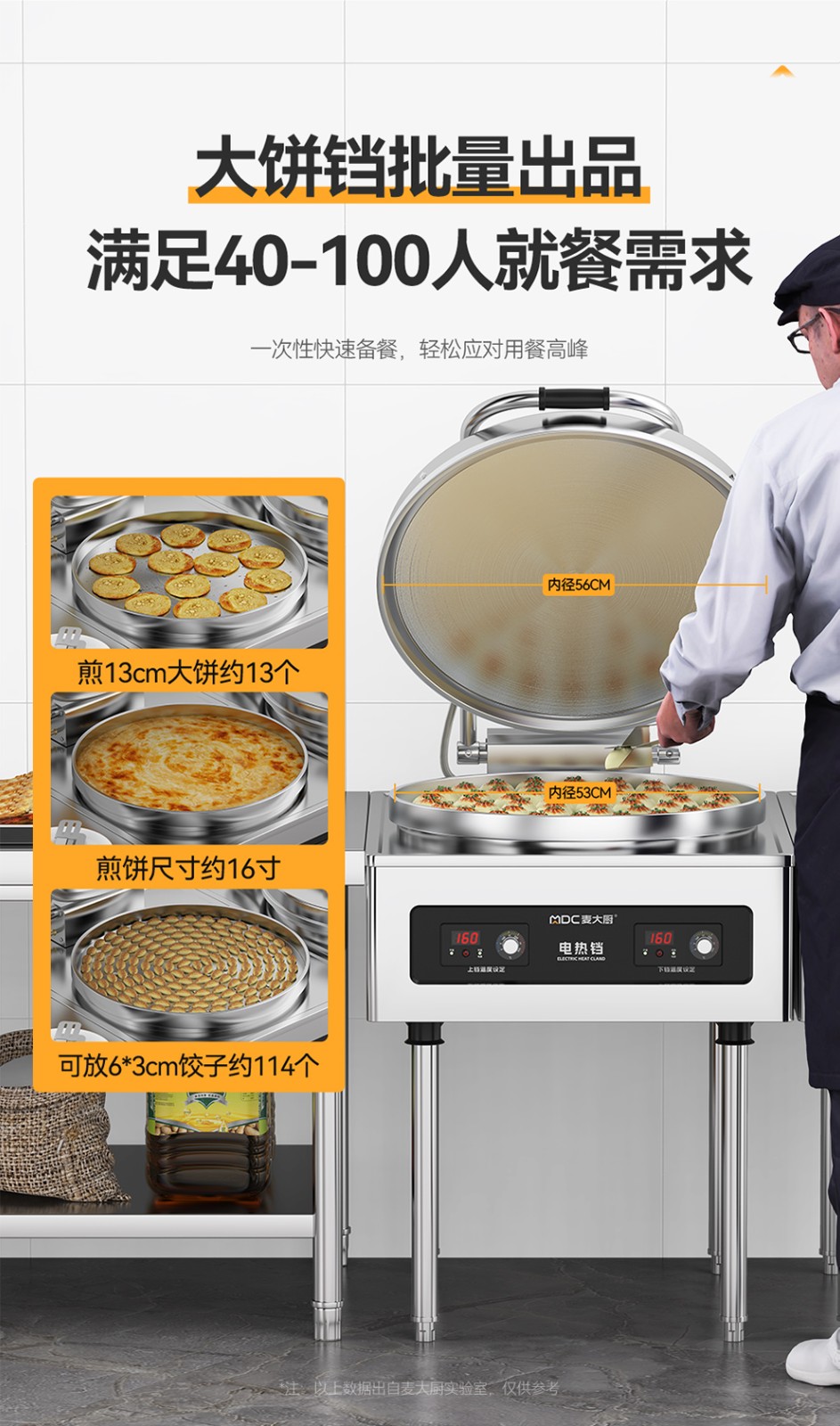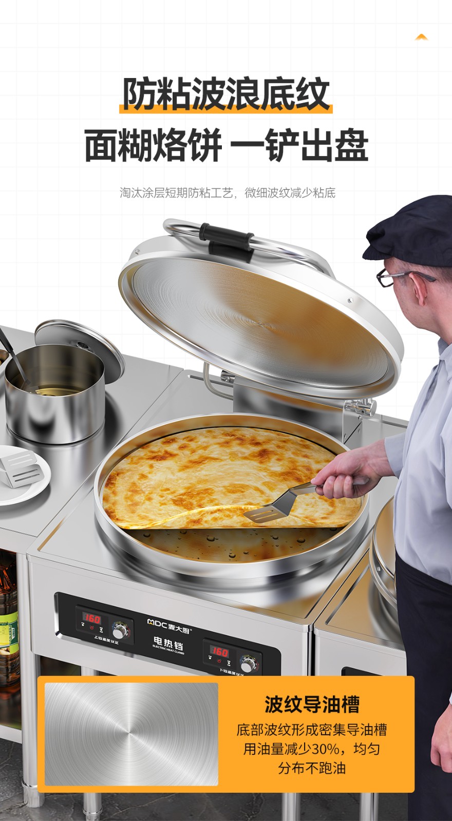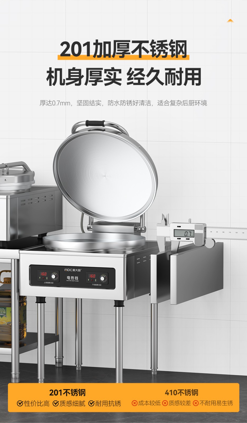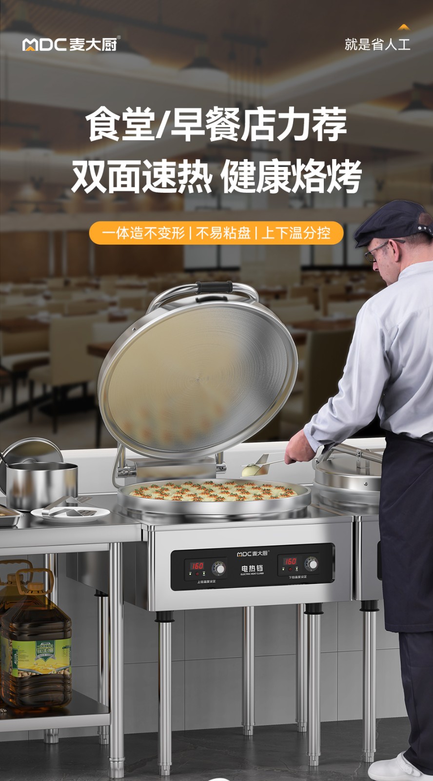 麥大廚380V數(shù)顯標準款商用電餅鐺食堂烙餅機(不銹鋼3cm)