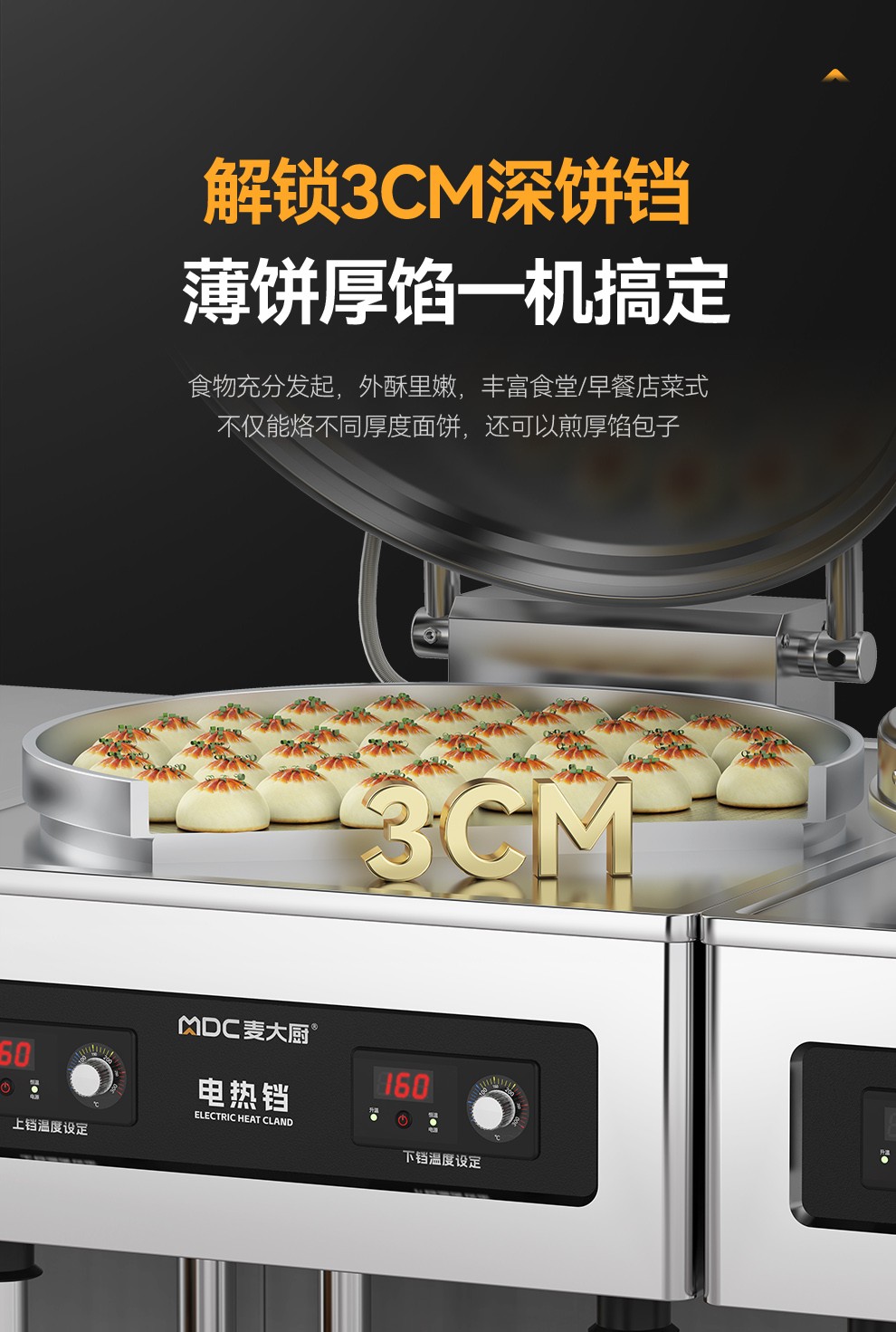 麥大廚220V食堂烙餅機(jī)數(shù)顯標(biāo)準(zhǔn)款商用電餅鐺(不銹鋼3cm)