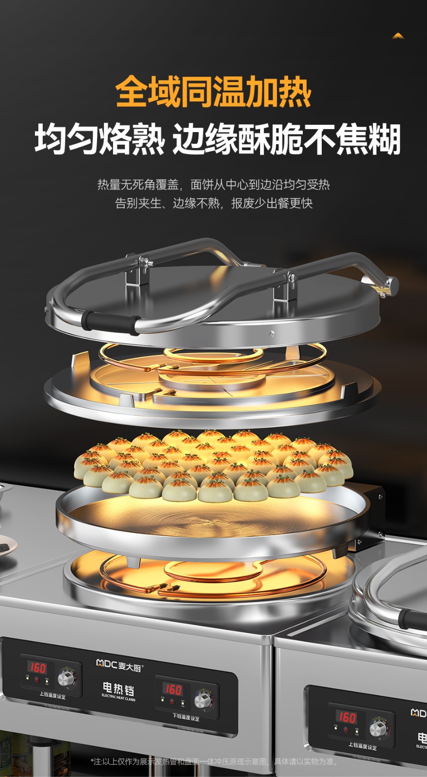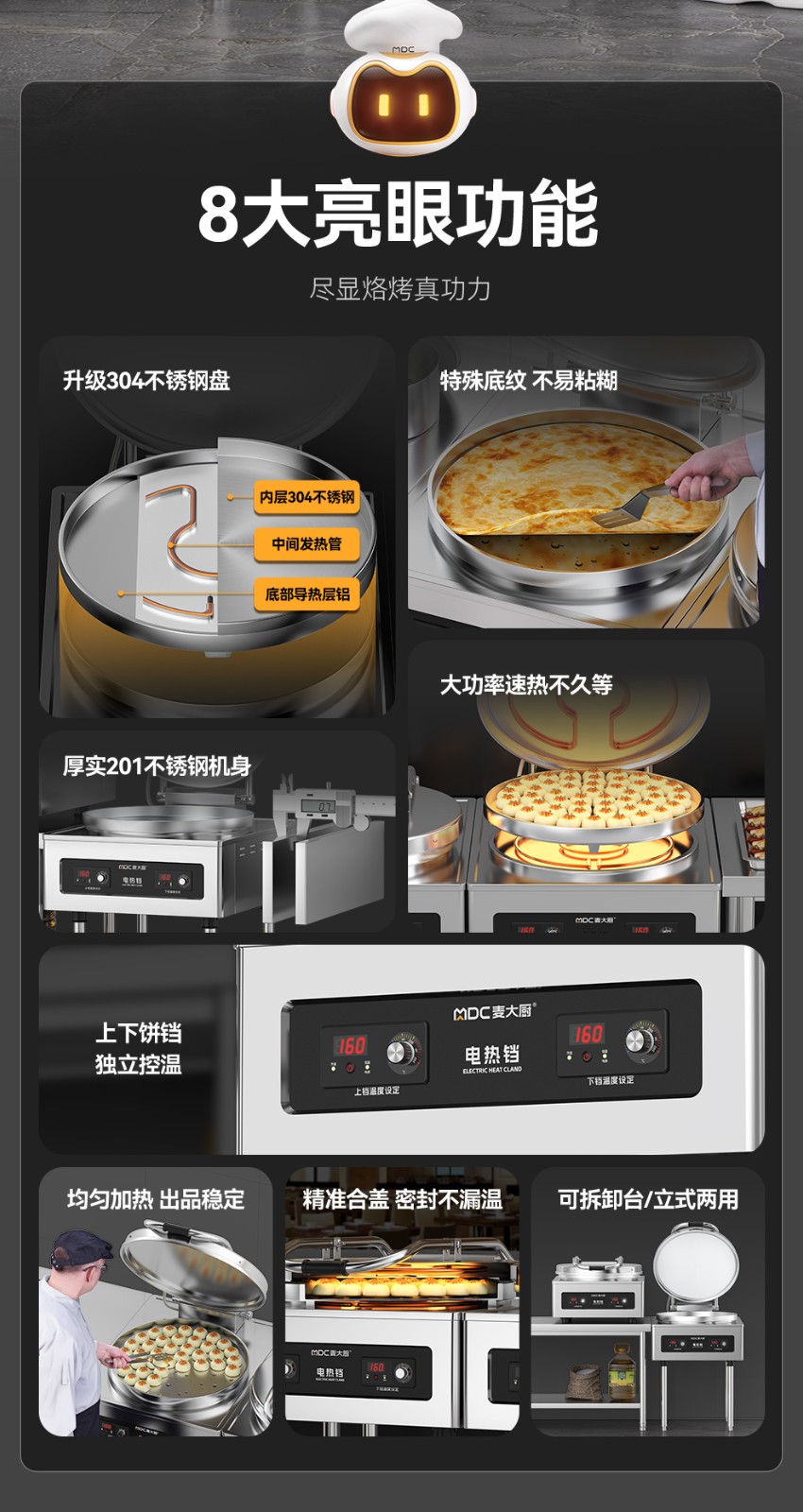 麥大廚220V食堂烙餅機數(shù)顯標準款商用電餅鐺(不銹鋼5cm)