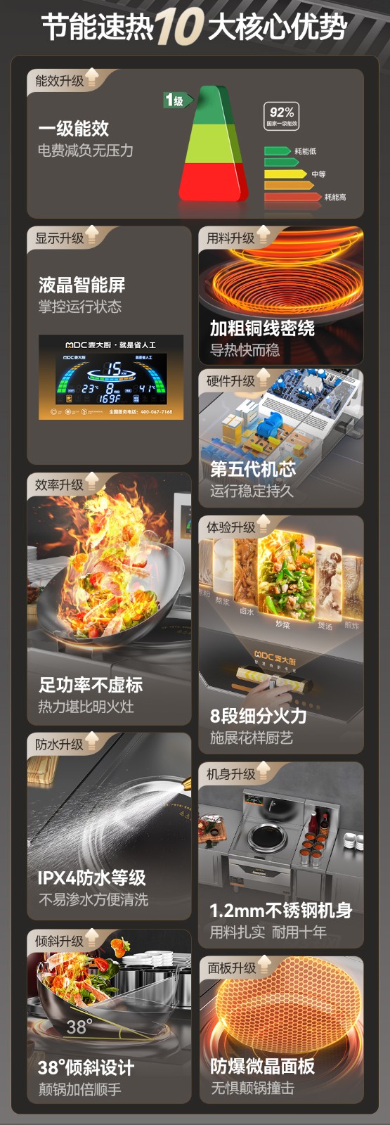 麥大廚旗艦款單頭無尾小炒爐12kw食堂大火力電磁灶商用