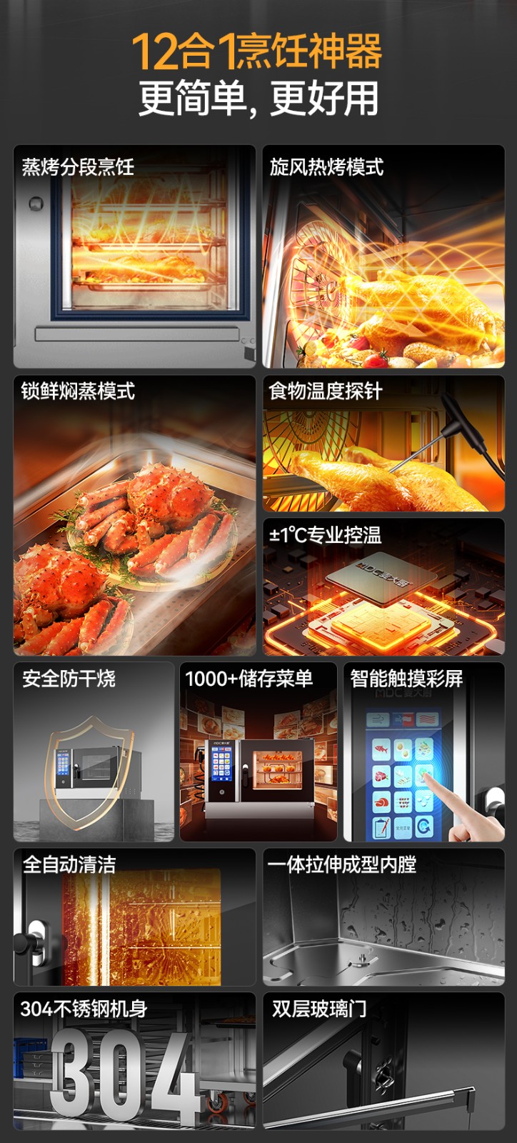 首頁 > 商廚產(chǎn)品 > 蒸烤箱 > 萬能蒸烤箱 >麥大廚ZKA19系列3層觸屏式商用萬能蒸烤箱4.2kW