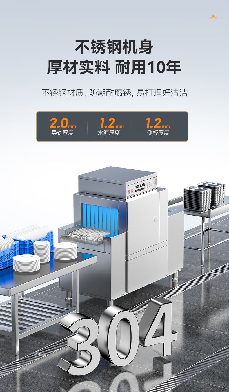 麥大廚旗艦款1.7m平放式單缸單噴淋長龍式洗碗機(jī)