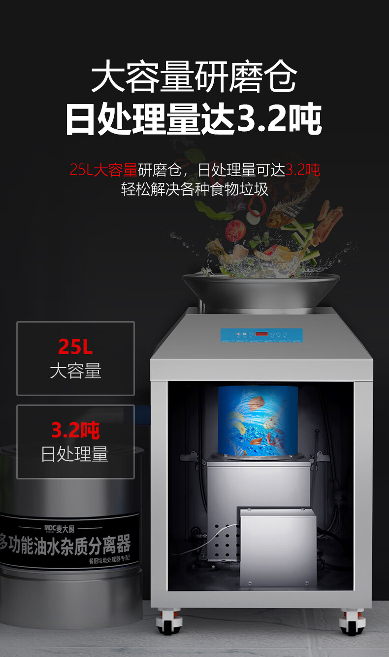 麥大廚垃圾處理器商用廚余干濕垃圾潲水粉碎機3600B