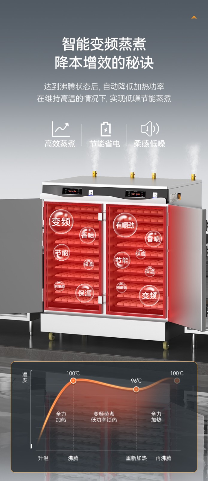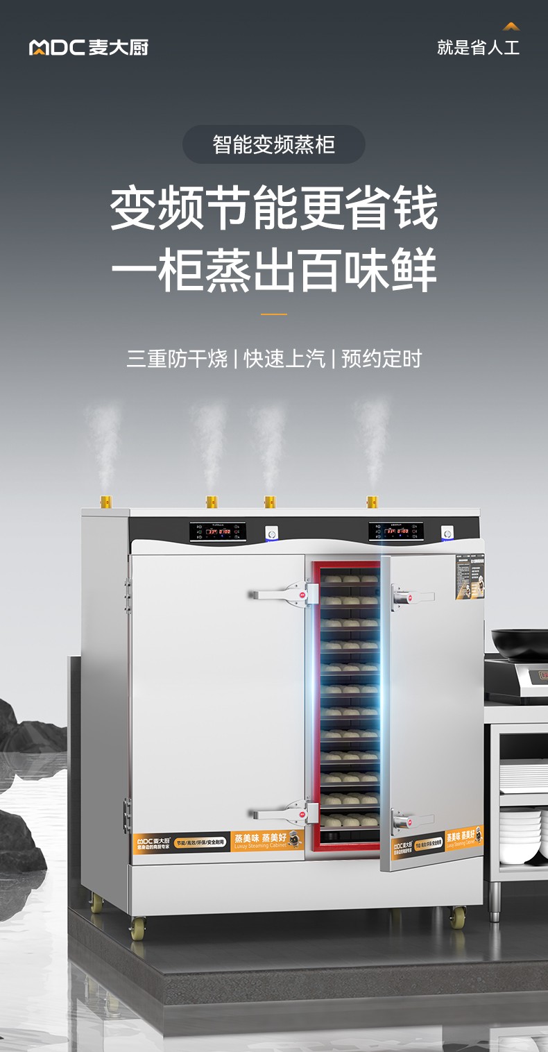 首頁(yè) > 商廚產(chǎn)品 > 蒸飯柜 > 變頻蒸柜 >麥大廚商用蒸柜48盤(pán)變頻款雙門(mén)電熱蒸箱蒸飯車(chē)全自動(dòng)蒸飯柜