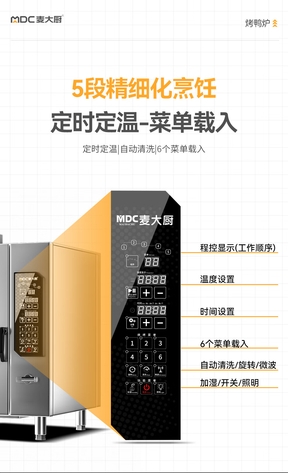 首頁(yè) > 商廚產(chǎn)品 > 蒸烤箱 > 烤鴨爐 >麥大廚快速烤鴨爐商用多功能烤爐透窗自動(dòng)清洗烤鴨爐380V 6KW