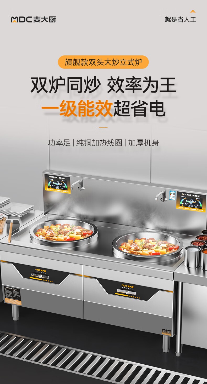 麥大廚食堂大炒鍋電灶臺旗艦款15KW雙頭酒樓飯店商用大炒爐