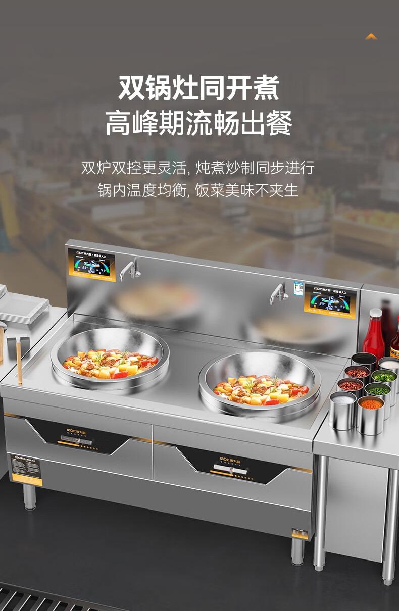 麥大廚學(xué)校食堂大炒鍋電磁爐旗艦款30KW雙頭飯店餐廳商用大炒爐