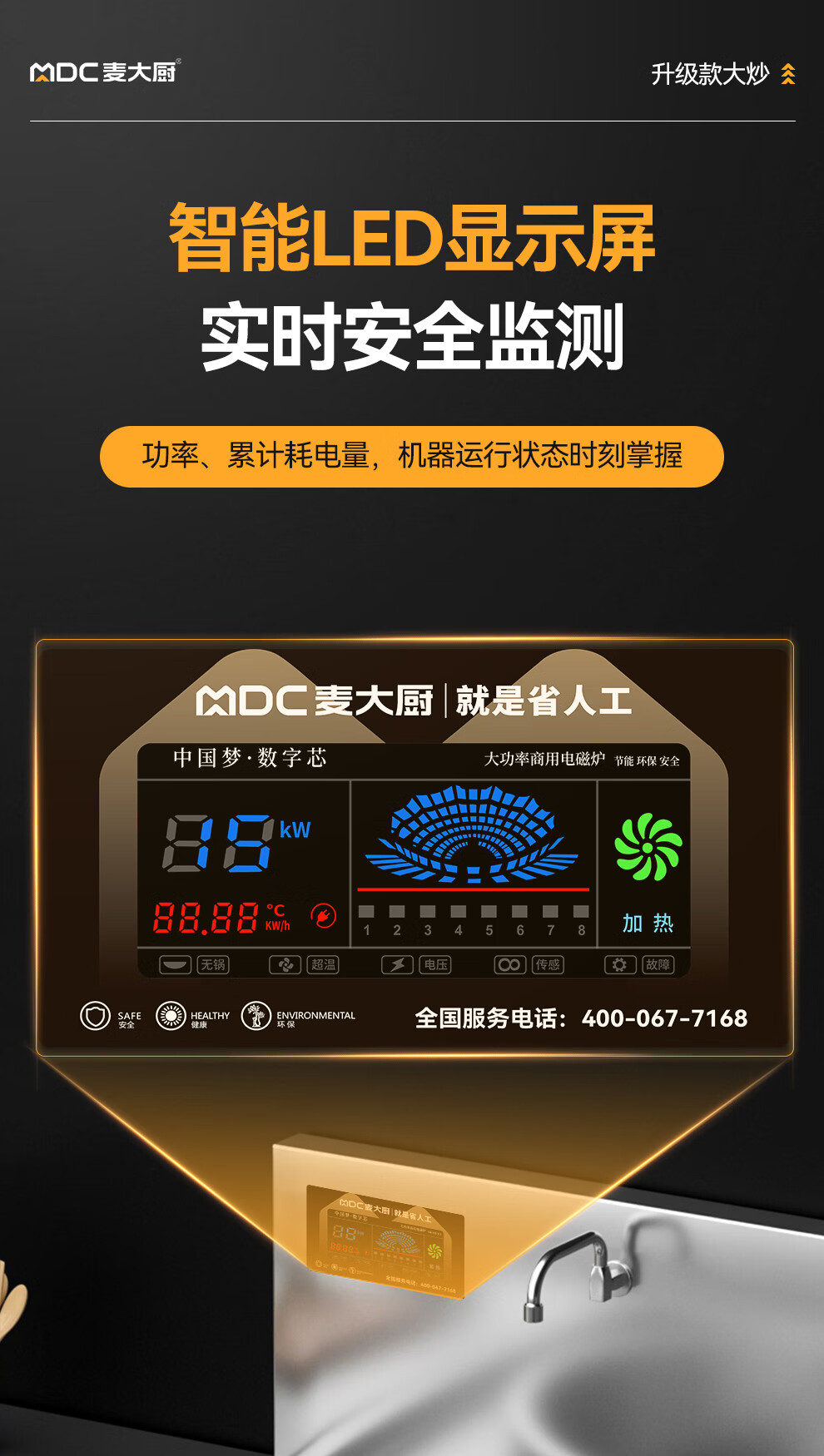 麥大廚飯店百人大炒爐電磁版升級款20KW單頭單位食堂商用大炒爐