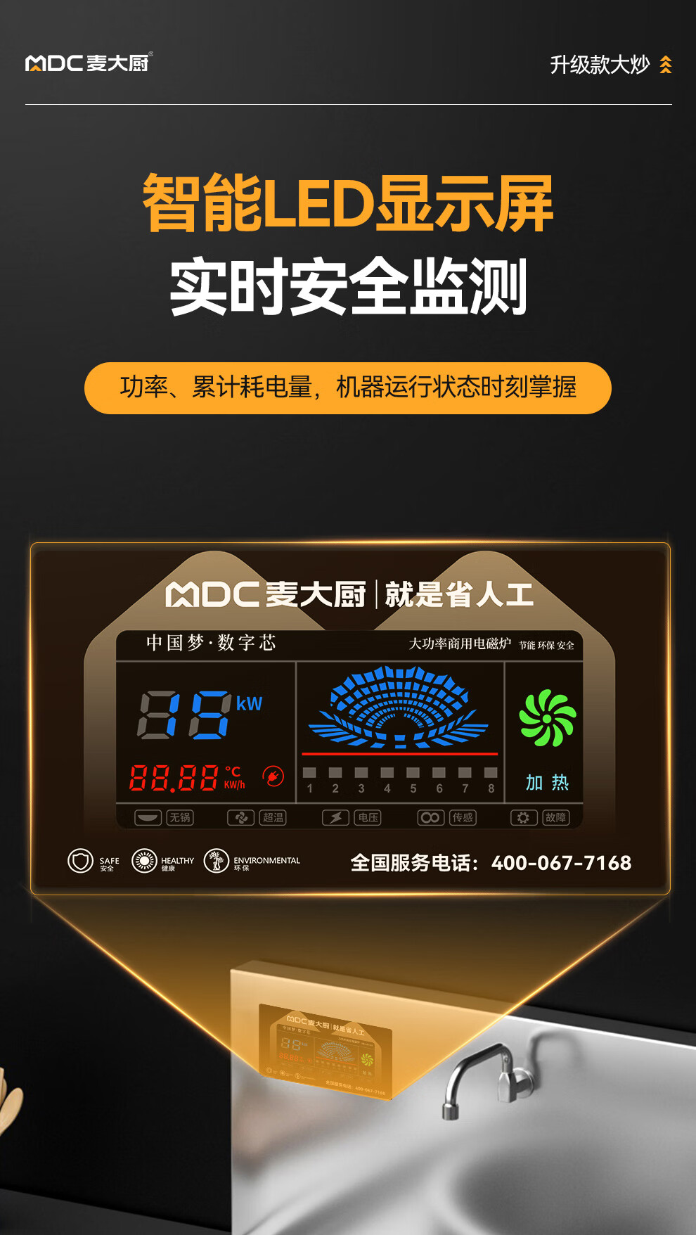 首頁 > 商廚產(chǎn)品 > 電磁灶 > 雙頭大鍋灶 >麥大廚食堂大炒鍋電灶臺升級款15KW雙頭工廠食堂大鍋灶
