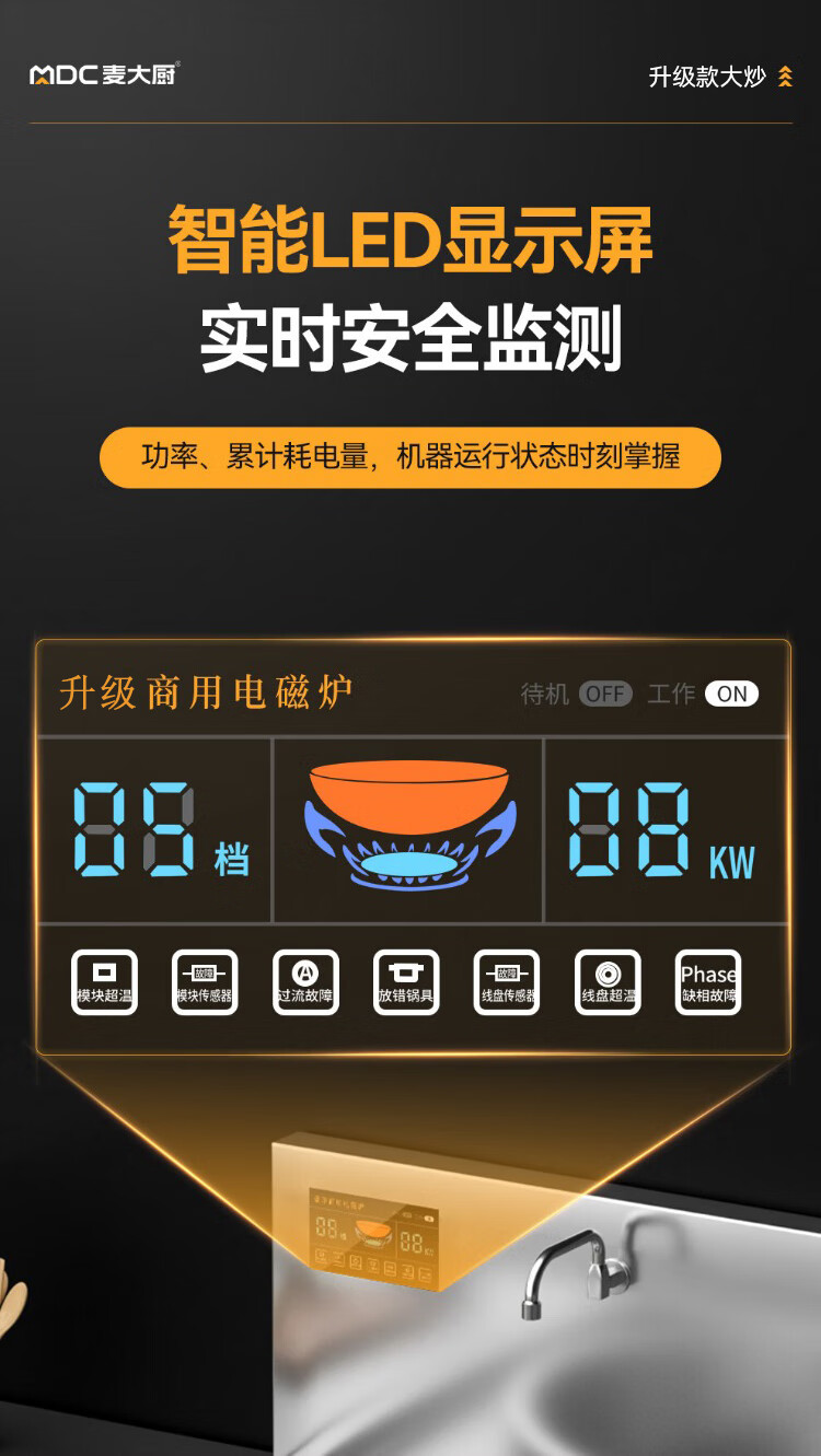 麥大廚大型大鍋灶電磁爐升級(jí)款25KW雙頭學(xué)校食堂大炒爐
