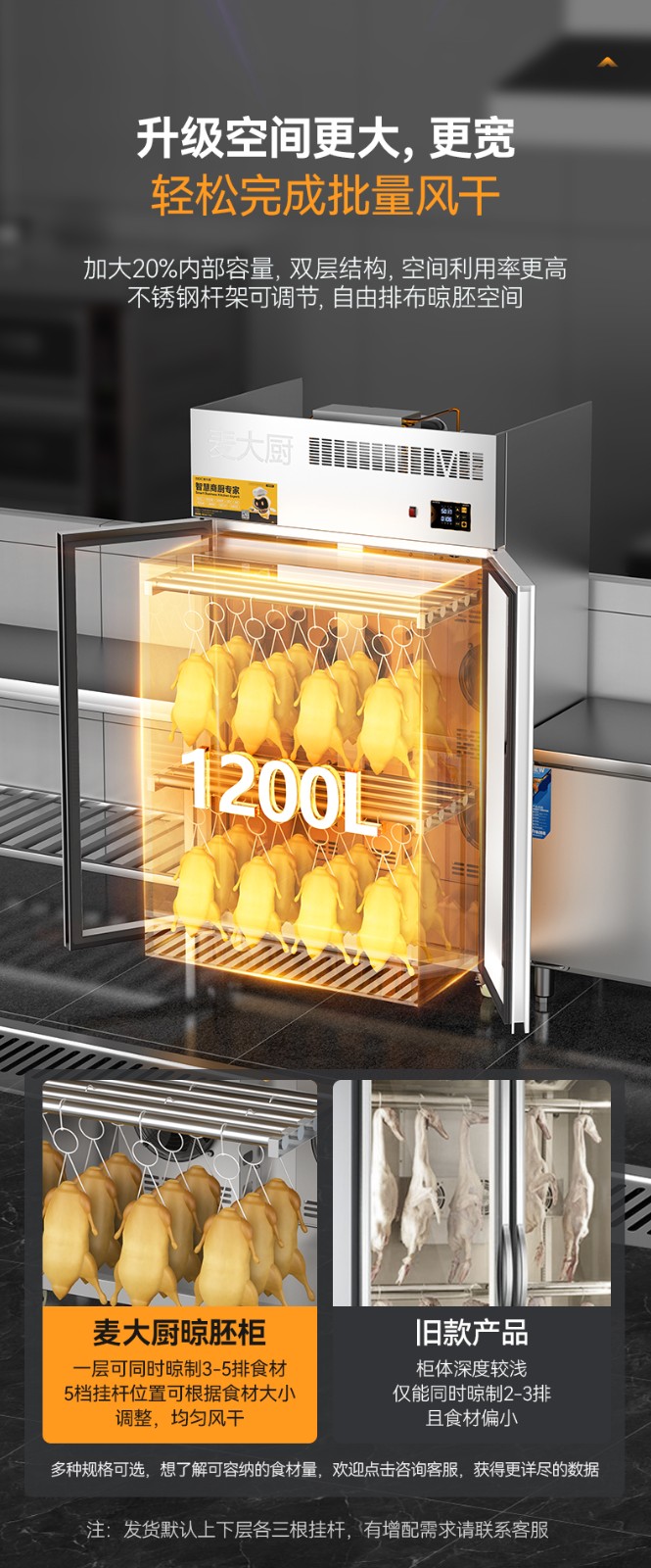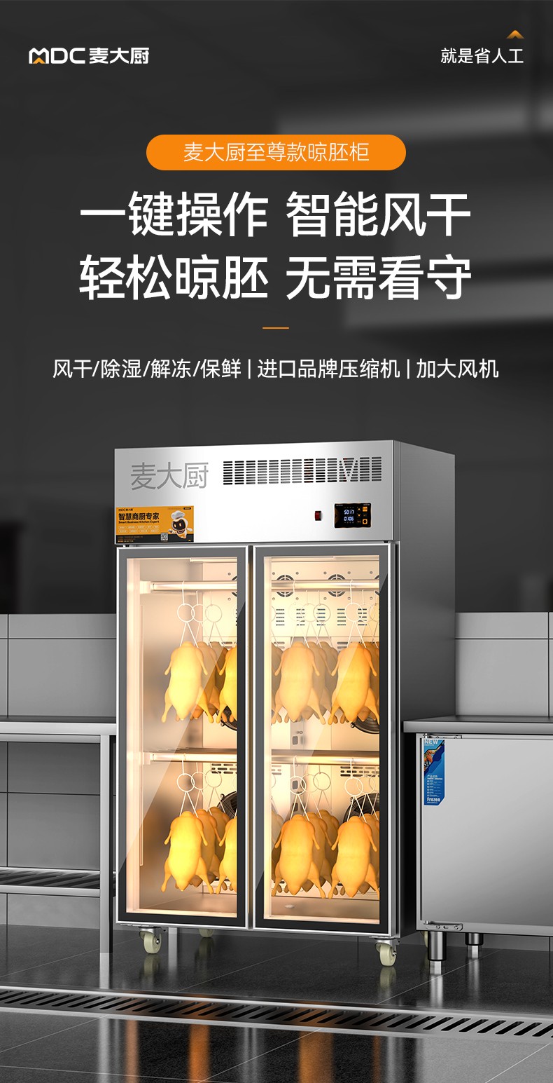 麥大廚商用晾胚柜節(jié)能至尊款1680W雙門烤鴨風(fēng)干柜