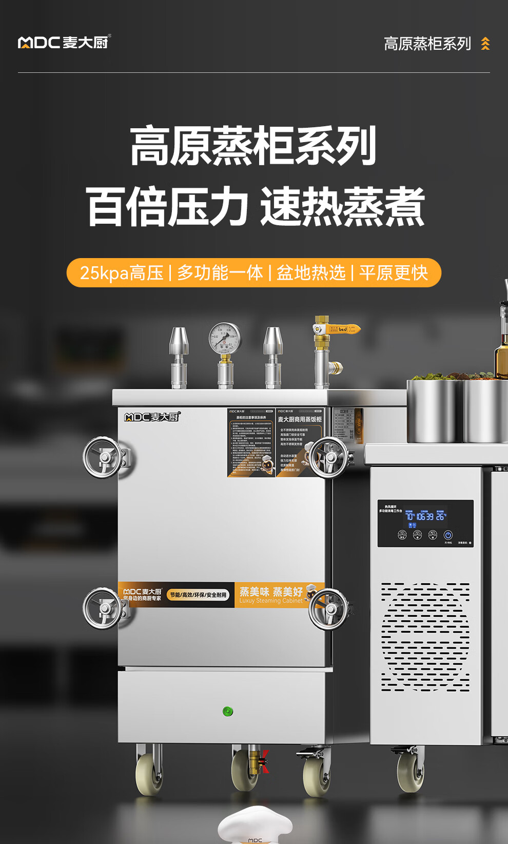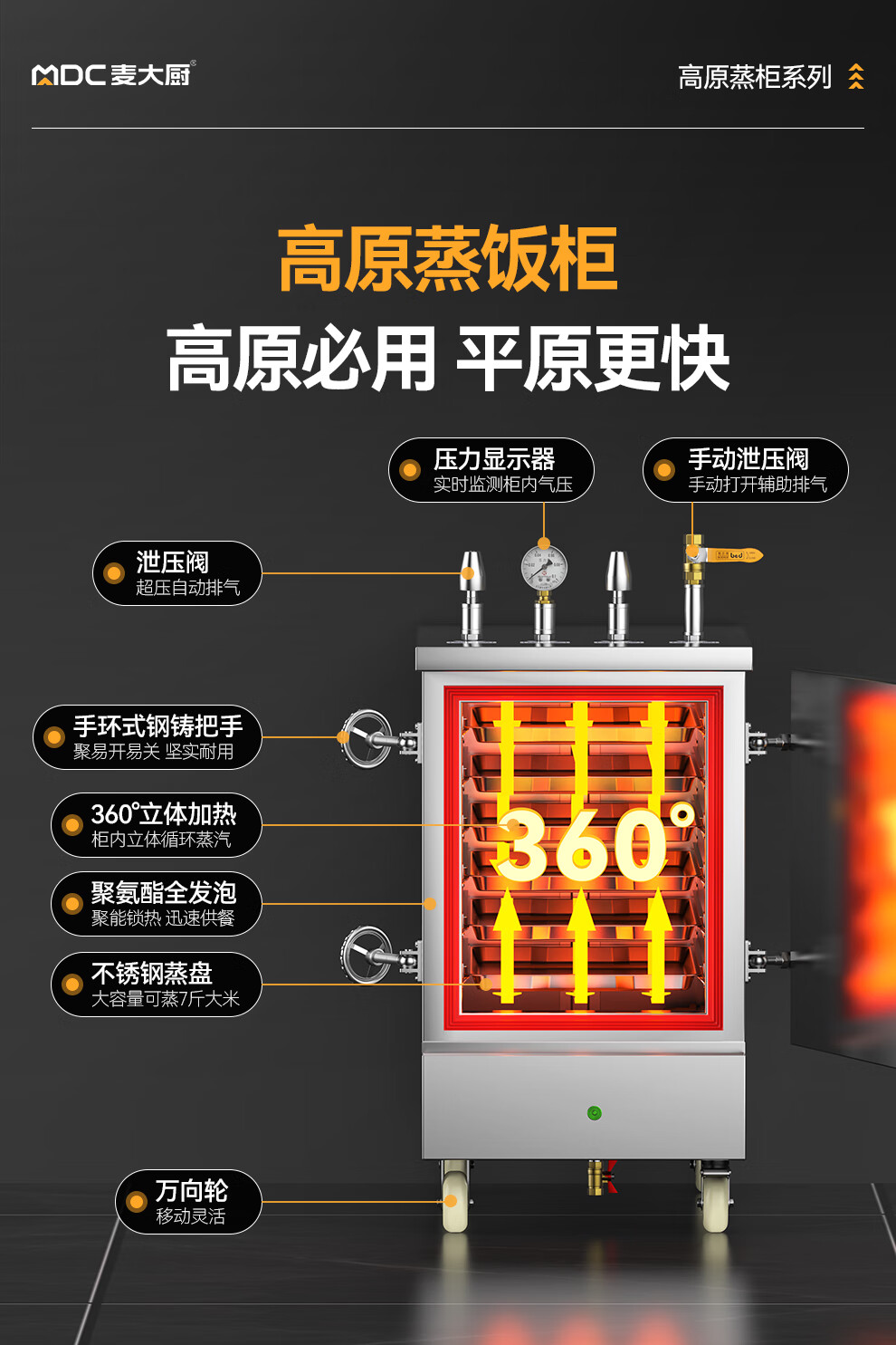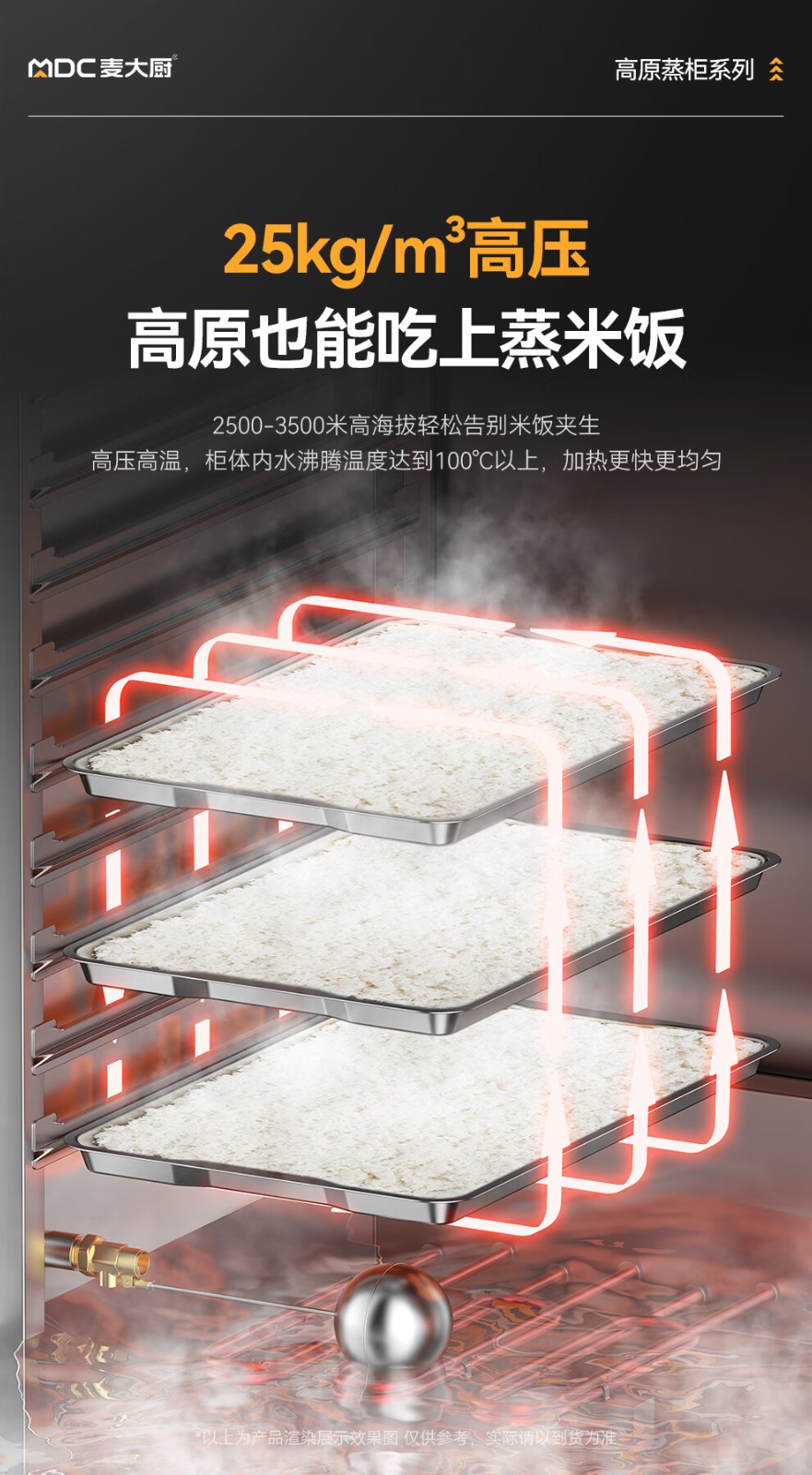 首頁(yè) > 商廚產(chǎn)品 > 蒸飯柜 > 高原蒸柜電熱款 > MDC商用高原蒸柜電熱款6盤單門蒸飯柜8KW