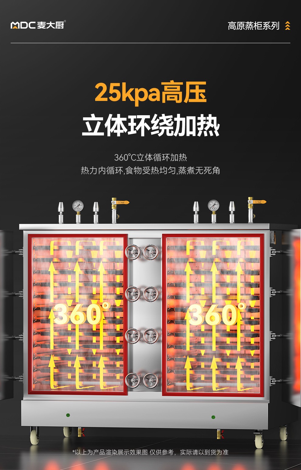 首頁 > 商廚產(chǎn)品 > 蒸飯柜 > 高原蒸柜電熱款 >MDC商用高原蒸柜電熱款48盤雙門蒸飯柜48KW