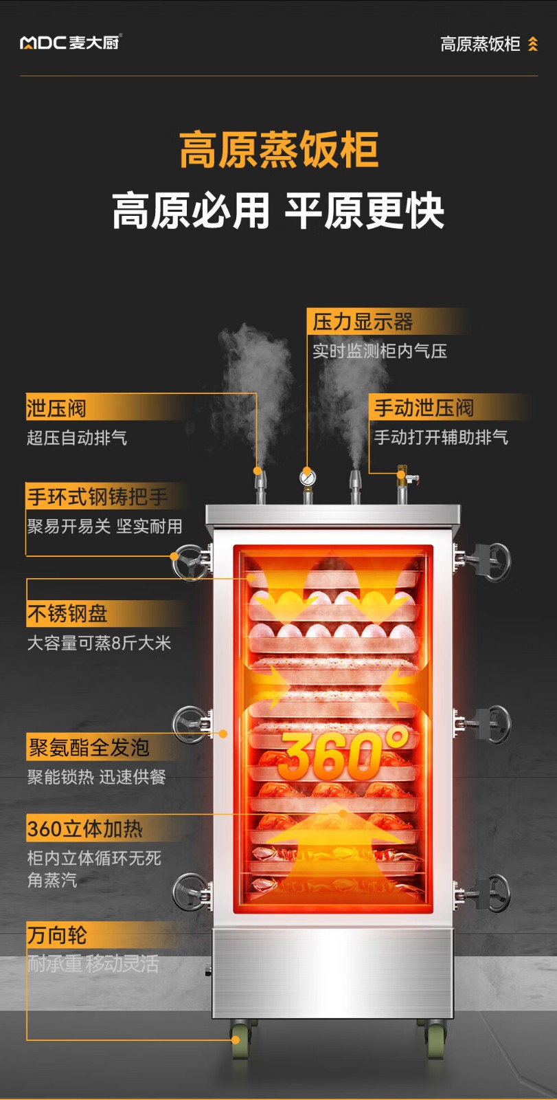MDC商用高原蒸柜燃氣款8盤單門蒸飯柜