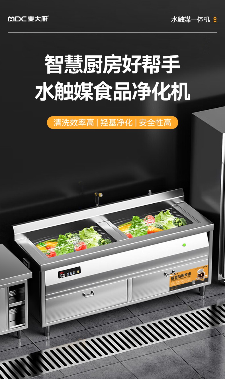 麥大廚1.8米自動商用洗菜機去農(nóng)藥殘留雙缸水觸媒雙凈化機