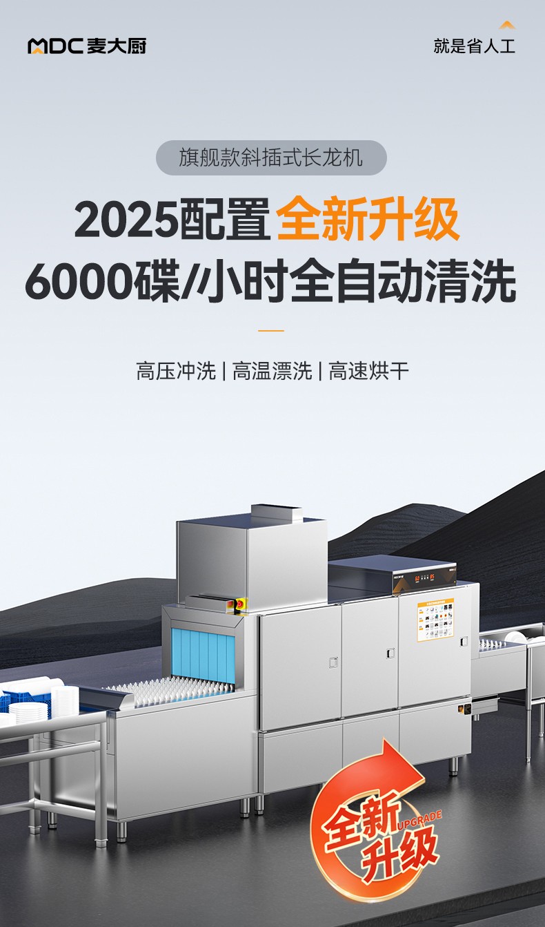 麥大廚旗艦款4.45m斜插式單缸雙噴淋單烘干洗碗機