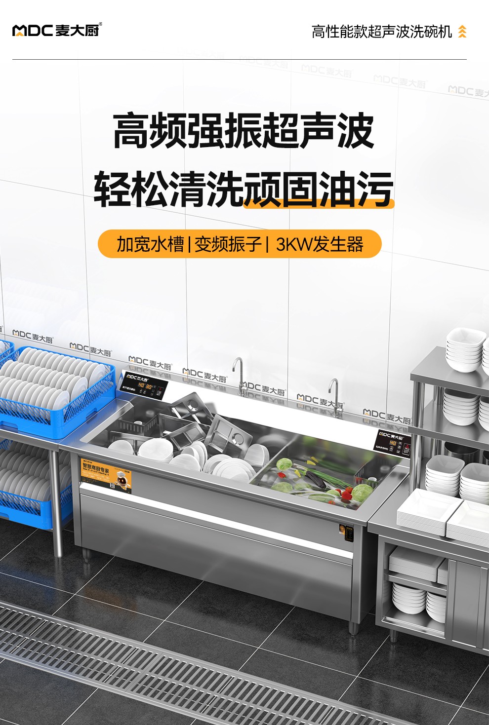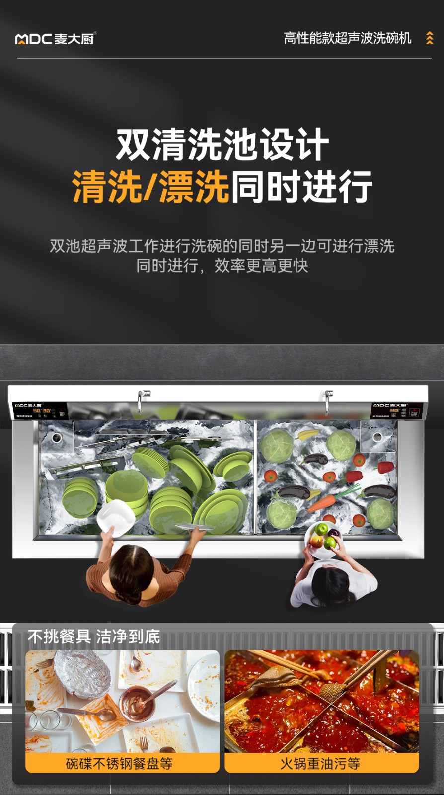 麥大廚高性能款2.0米雙池超聲波洗碗機商用
