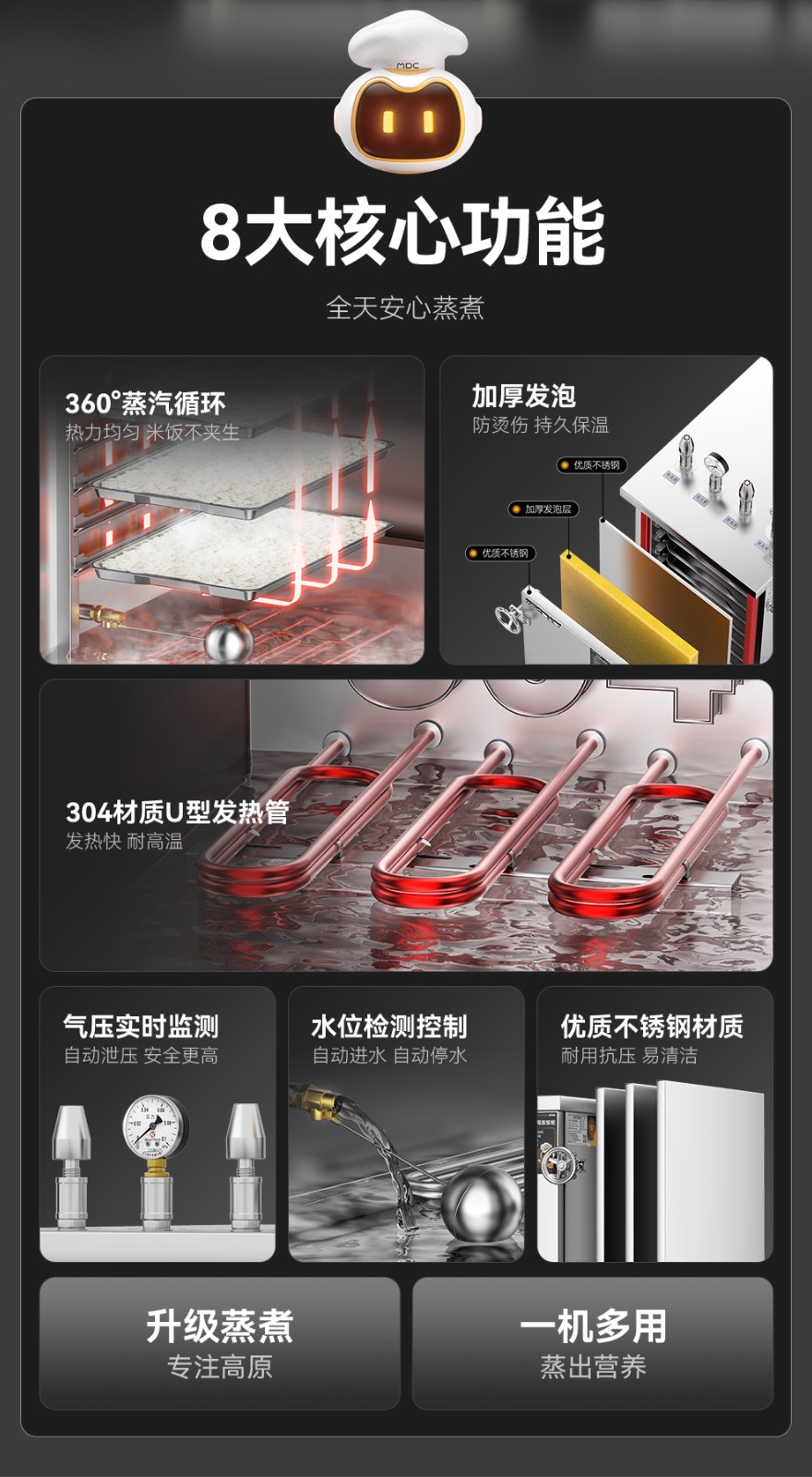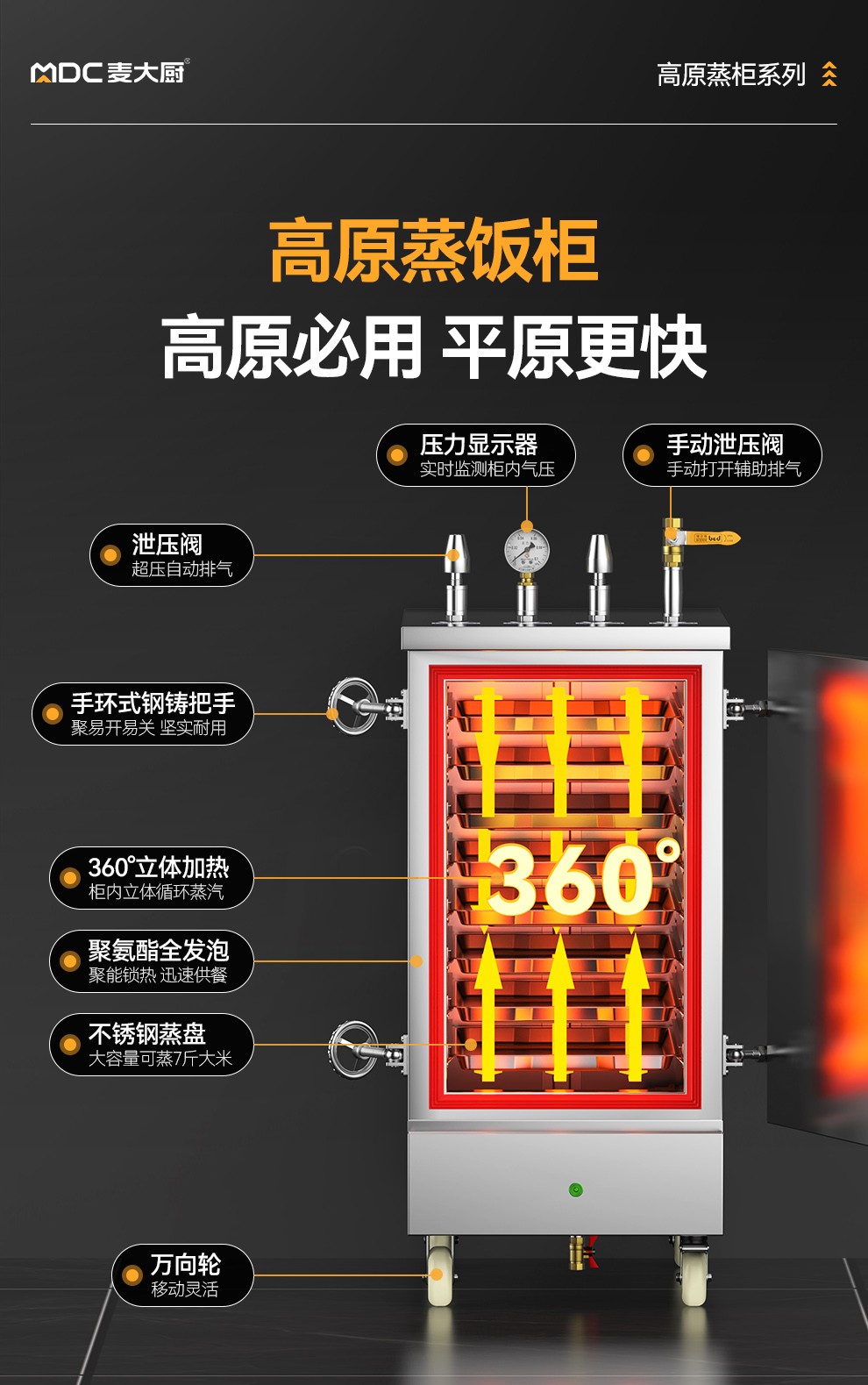 首頁 > 商廚產(chǎn)品 > 蒸飯柜 > 高原蒸柜電熱款 >MDC商用高原蒸柜電熱款8盤單門蒸飯柜