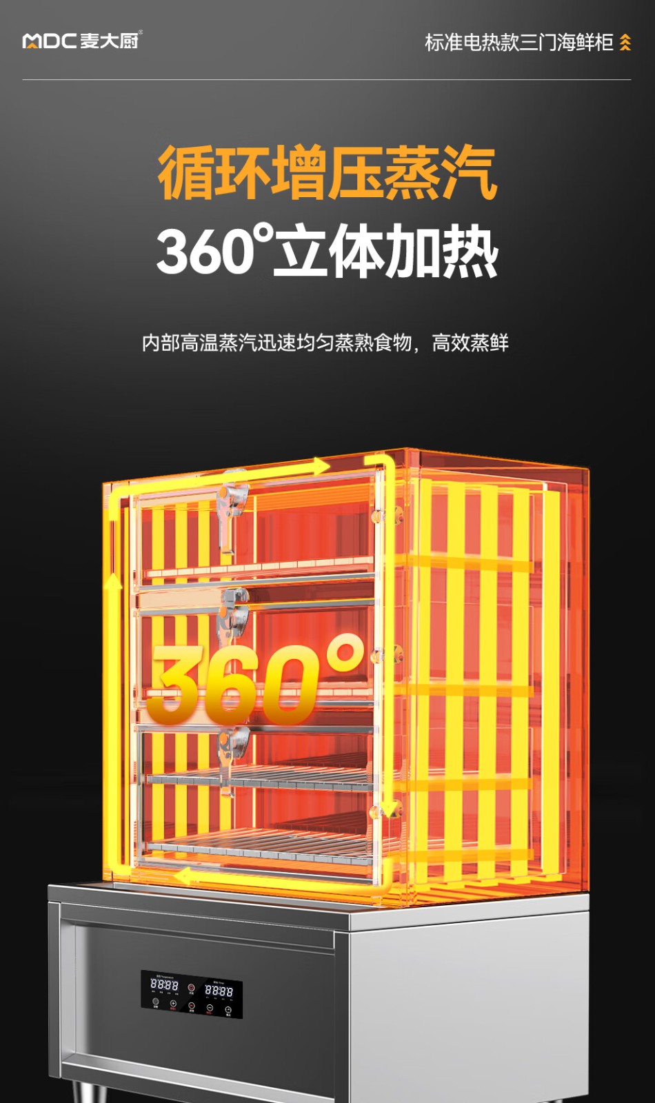 麥大廚商用蒸柜1200mm標(biāo)準(zhǔn)電熱款三門海鮮蒸柜